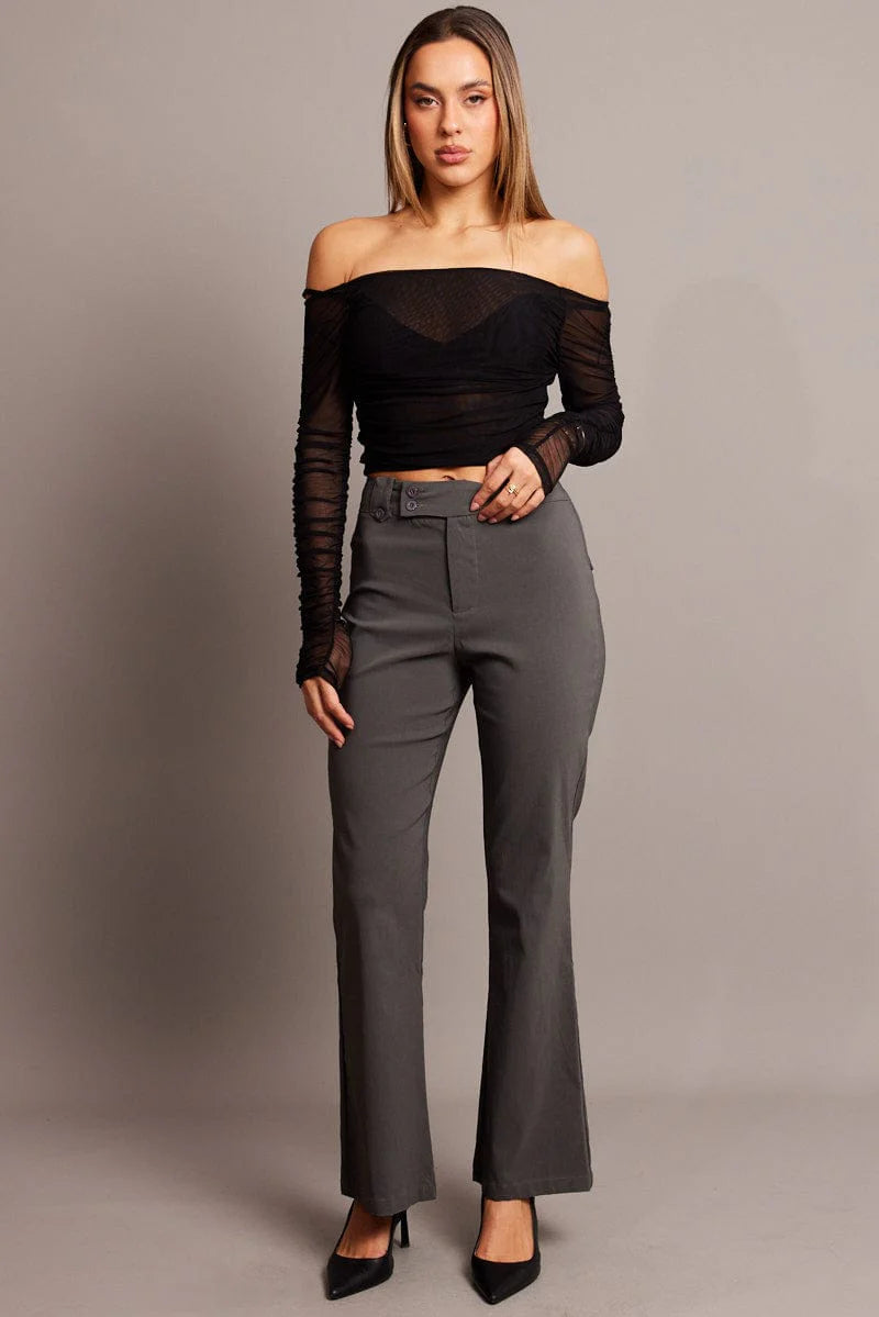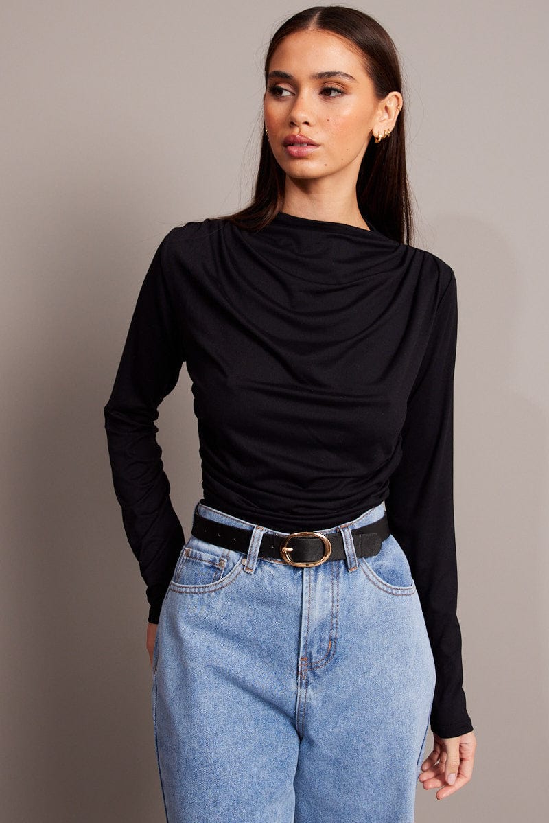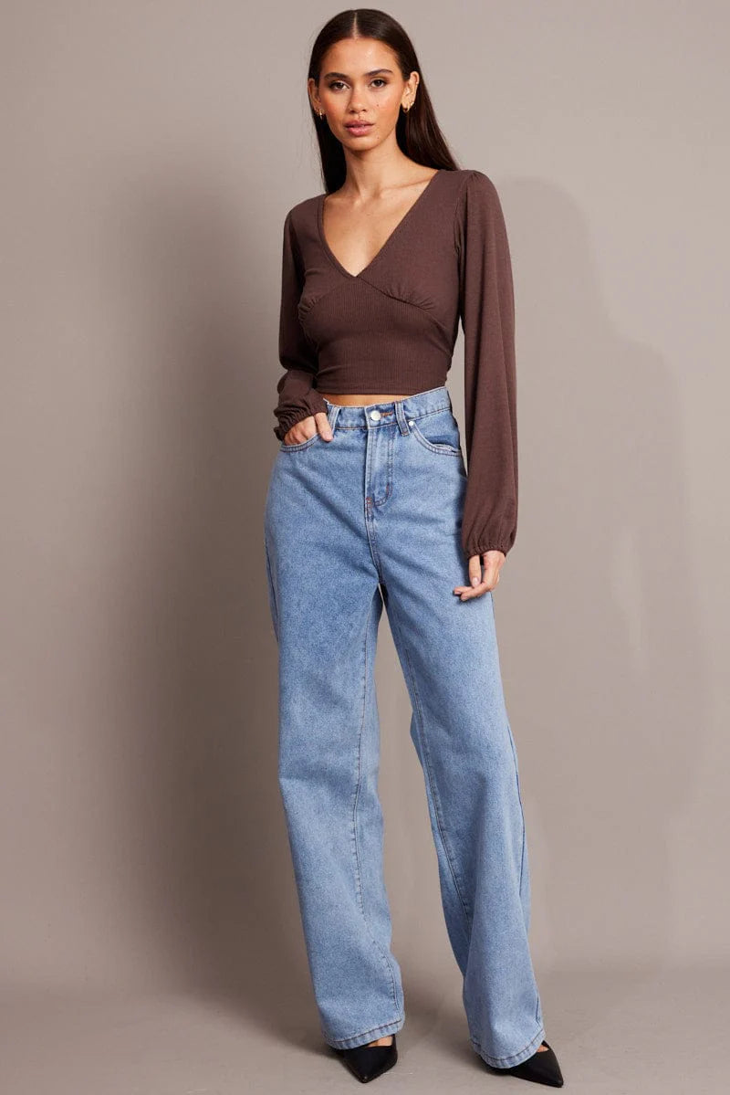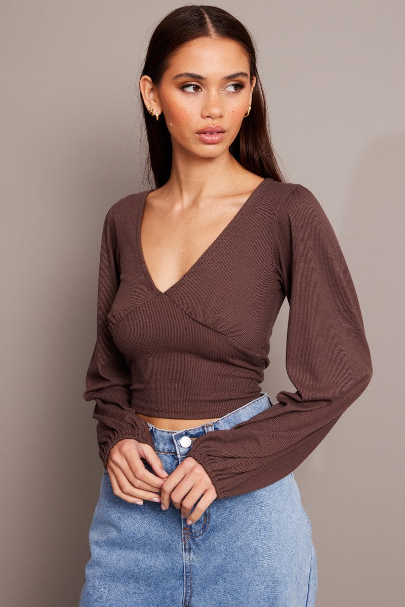 Brown Puff Sleeve Top Long Sleeve V Neck