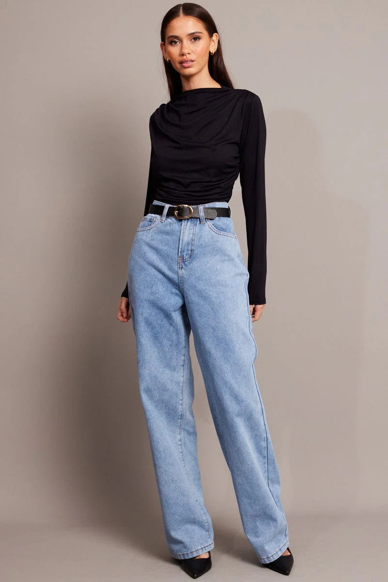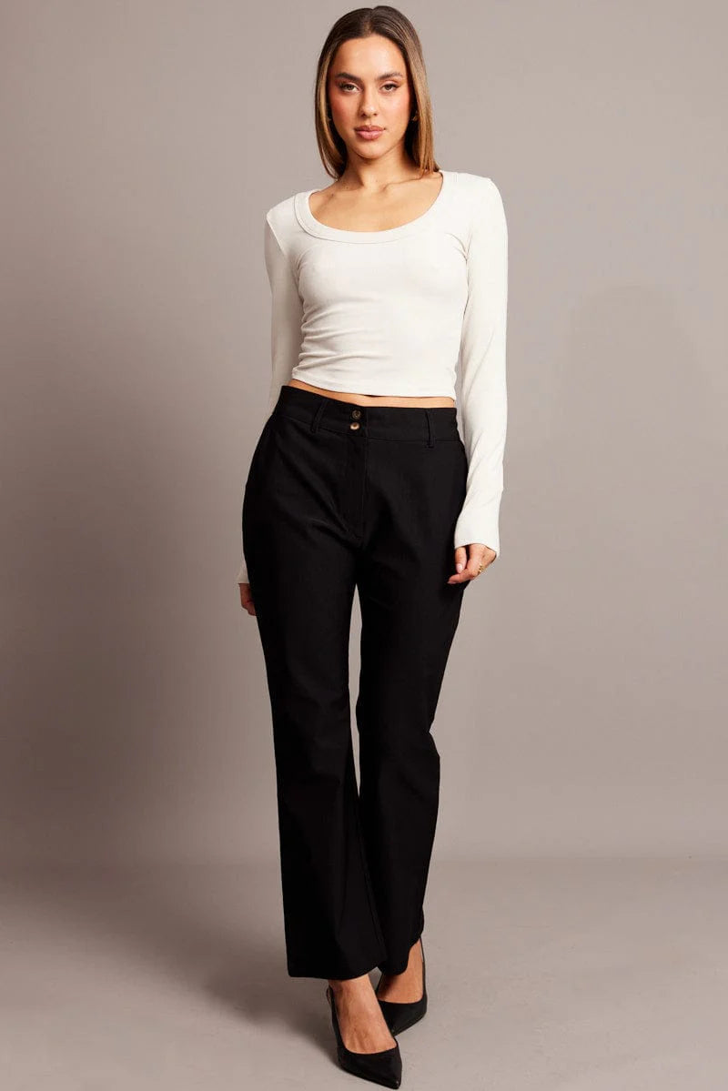 White T Shirt Long Sleeve Scoop Neck Rib Jersey