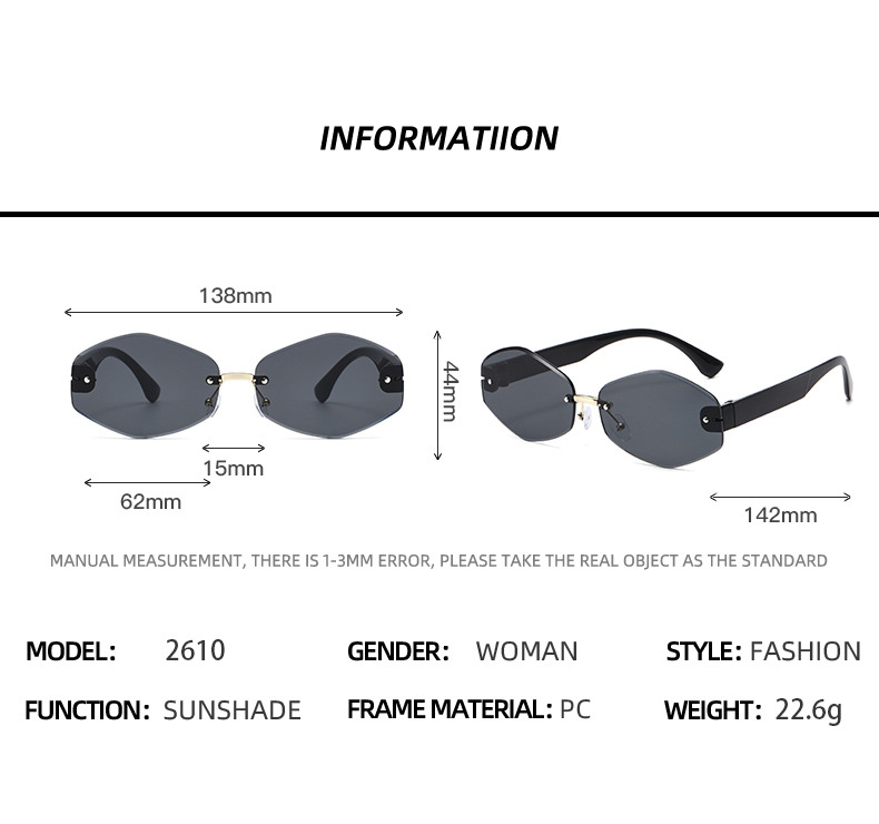Crystal-Edged Rimless Sunglasses — Casual, Decorative, and Sun-Shading Eyewear for Outings