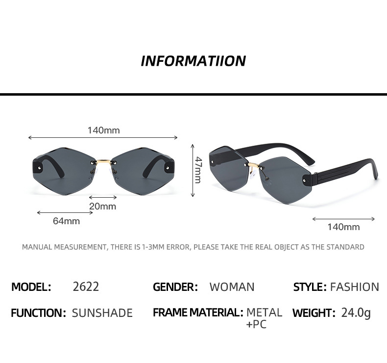Diamond-Cut Rimless Square Sunglasses