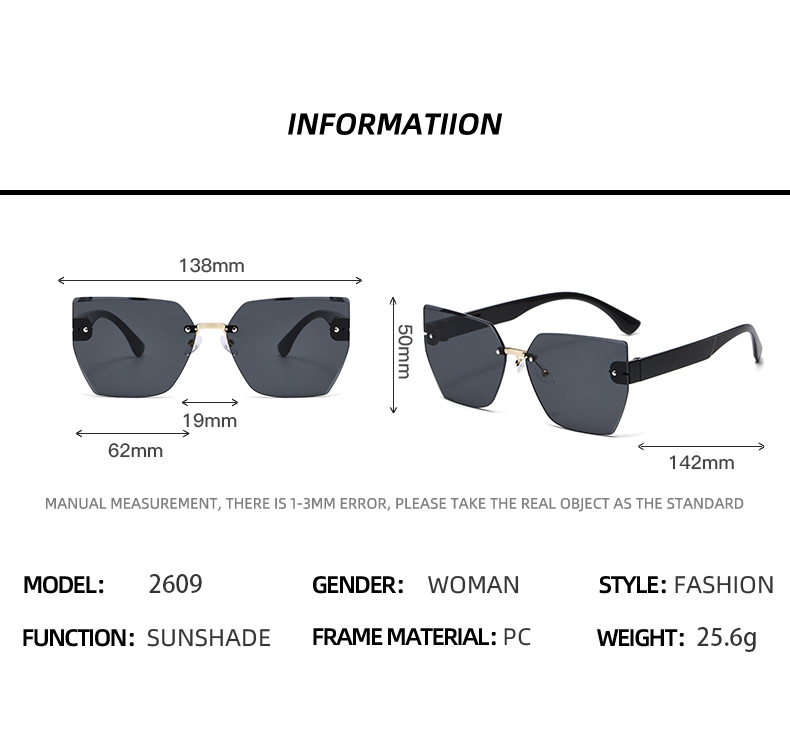 Frameless, Irregular, Trendy & Distinctive Sunglasses with Crystal-Cut Edges